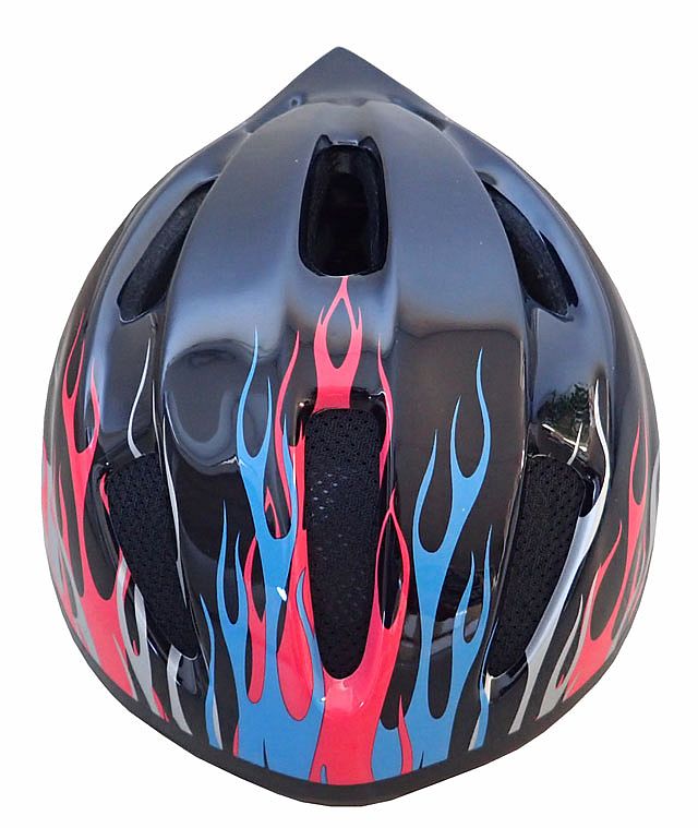Cyklistická dětská helma pro kluky, 8 větracích otvorů, v přední části helmy je síťka proti hmyzu. V zadní části helmy je stahovací pásek okolo hlavy s upínacím šroubem pro dokonalé upnutí. Velikost S (48 – 52 cm). Hmotnost helmy je 200 g. Helma je vyrobená ze speciálního černého EPS (polystyrenu), který je pevnější a odolnější vůči nárazům než klasický bílý EPS, ze kterého jsou vyrobené levnější helmy.