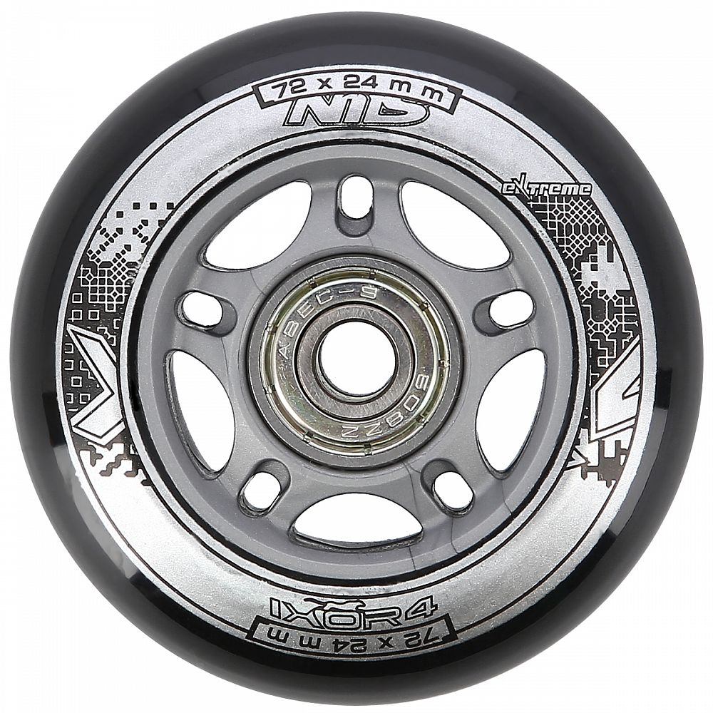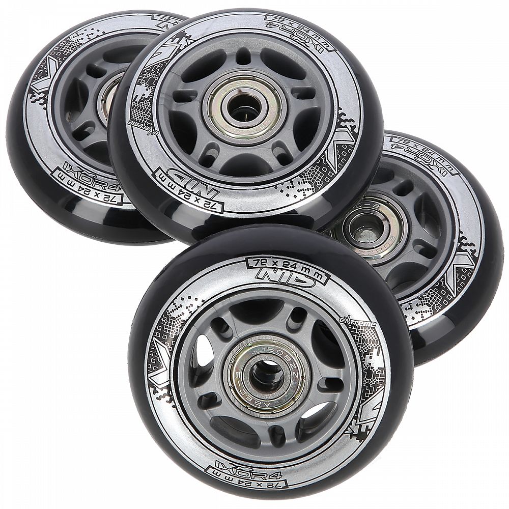 Náhradní sada koleček velikosti 72x24 mm černé barvy a tvrdostí 82 A s ložisky ABEC 9.